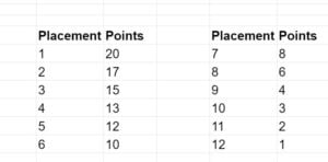 Scoring will be for each game and be based on each team’s final kill count and in-game placement as set forth below: